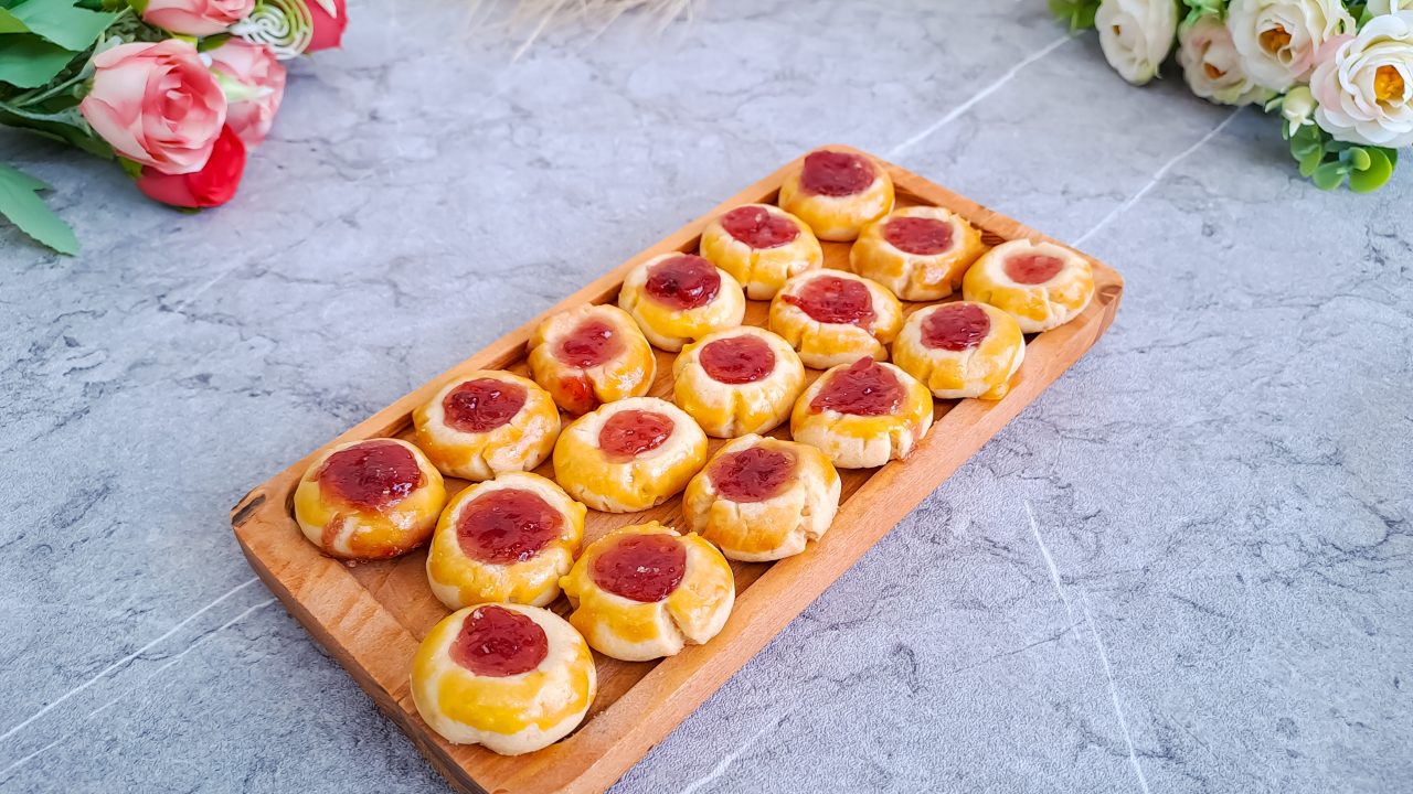En anglais, on les appelle les thumbprint cookies, parce qu’on y creuse une petite cavité qui accueille le plus souvent de la confiture ou de la gelée. Puisqu’on est en saison, j’ai pensé remplacer cela par du curd de rhubarbe. Avec la texture sablée et beurrée du biscuits, la note végétale de la farine de maïs et l’acidulé de la rhubarbe, on obtient une douceur qui célèbre le début de l’été!