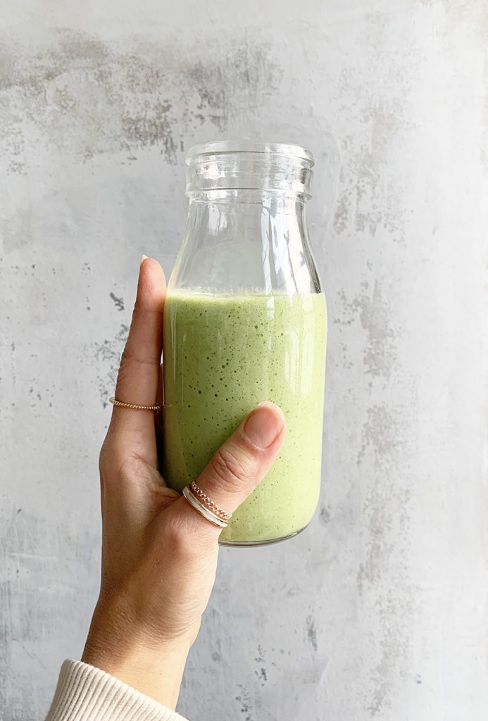 - Mettre tous les ingrédients du smoothie dans le mélangeur et actionner jusqu’à l’obtention d’une consistance liquide.