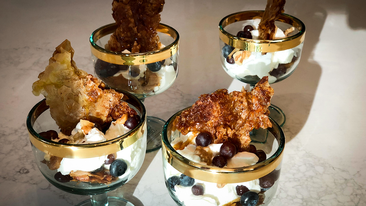 J’ai créé ce dessert une fois où j’avais très peu de temps et où je voulais tout de même impressionner mes invites. Dans les faits, l’écorce de baklava est très simple et pour ce qui est du yogourt égoutté, c’est pour vous. Vous pouvez utiliser celui que vous préférez, mais le yogourt grec égoutté en fera un délice dont vous vous souviendrez longtemps.