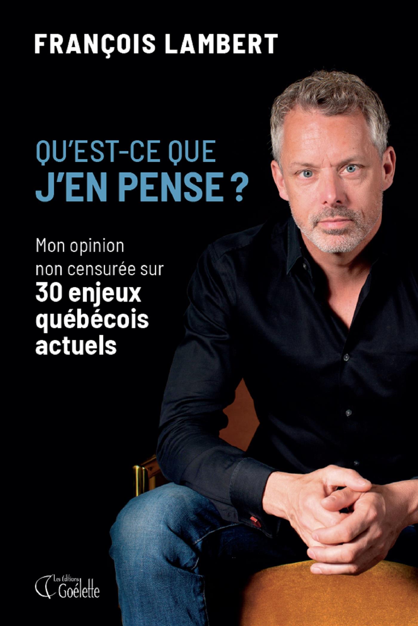 Qu’est-ce que j’en pense? Mon opinion non censurée sur 30 enjeux québécois actuels, qui paraît chez les Éditions Goélette, est disponible dès maintenant en ligne (24,95$) et en librairie.