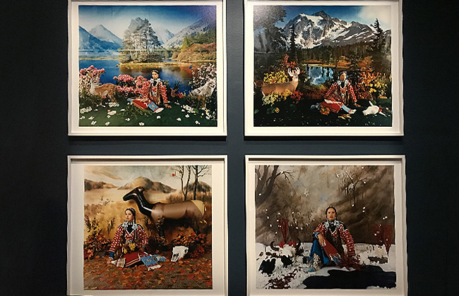 Dans un premier temps, on nous présente des clichés de la culture western: paysages et photographies de l’Ouest, tableaux illustrant des scènes stéréotypées avec chevaux, indiens, cowboys… Ces derniers sont présentés dans des cadres aussi kitch que l’image qu’ils présentent ce qui ajoute à l’ambiance, aussi créée par les planches de bois dont on a recouvert les murs et qui dégagent une légère odeur de nature. L’ensemble dégage d’ailleurs un amour profond de la nature qui est mise en lumière par les artistes de façon extraordinaire.