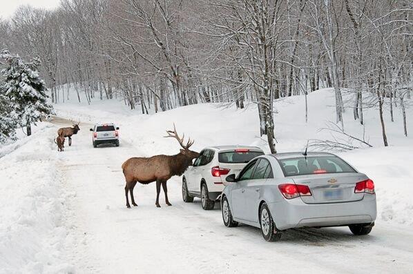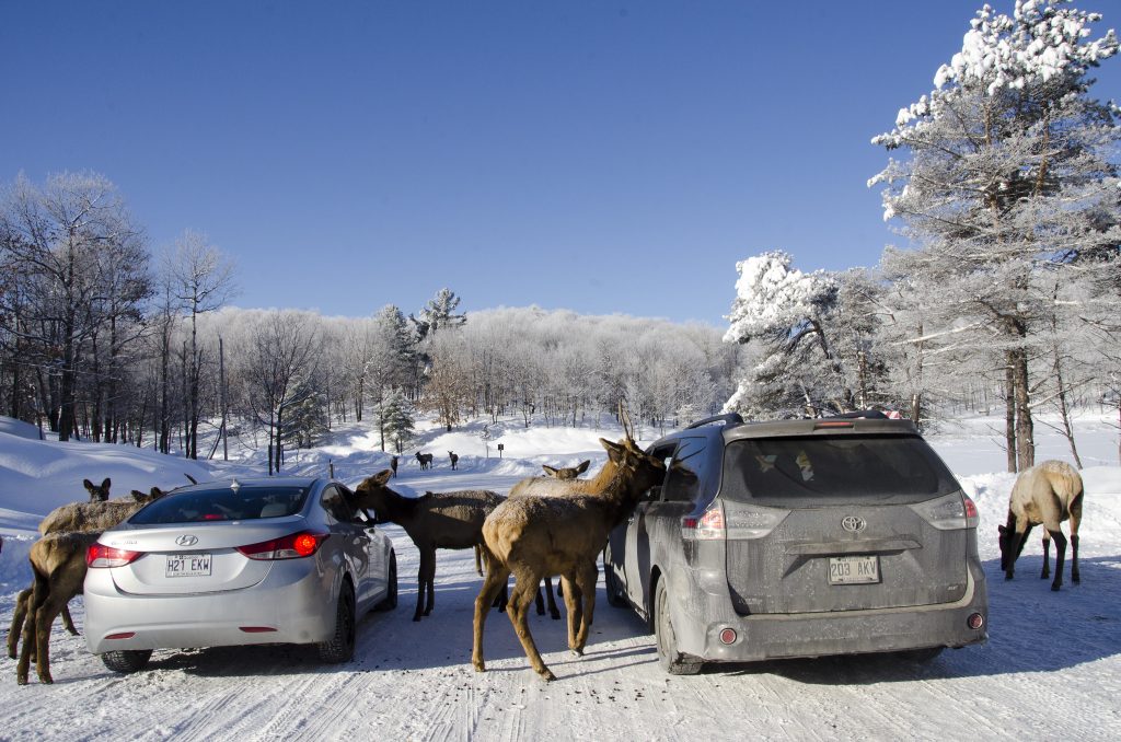 Après avoir dégusté un lunch à la Maison du Parc, ils ont décidé d’explorer la montagne en voiture, en suivant le parcours de 15km. Cet espace regorge d’animaux sauvages de l’hémisphère nord. Jérôme est très fier d’avoir aperçu des renards arctiques, des daims et des chevreuils. Il en a même nourri. Ses préférés? Les sangliers qui, selon lui, ressemblent à un mélange de petit chien et de porc! Des loups noirs se sont même montré le bout du nez!