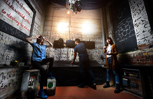 C’est enfermés et les deux mains menottées que nous avons débuté notre activité. Comment s’évader de notre cellule quand il n’y a qu’un banc et un petit bout de métal? Il faut user de ruse et de stratégie; c’est ce que nous avons fait! Mais une fois sortis de notre cellule, il fallait s’évader de la prison en 45 minutes sinon, nous allions être exécutés. Il fallait donc chercher des indices et tenter de trouver des solutions à l’aide des cartes, des clés, des papiers chiffonnés dans la poubelle, des cadenas et de tous autres objets trouvés. Pas facile, mais nous avons réussi! A/Maze Montréal offre 4 expériences: la prison, le laboratoire, le centre militaire et le temple perdu. A/Maze Pointe-Claire, quant à lui, propose le cirque, le vol au musée et le bateau de pirate. Tout nouveau: A/Maze: Labyrinthe extraterrestre! Il faut que je l’essaie!