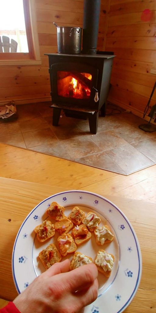 J’ai eu beau chercher, je n’ai PAS trouvé de robinet accroché au lavabo! Une fois installés, au bord du foyer, je sirotais t.r.è.s lentement mon verre de vin. Je ne voulais pas l’avouer, mais je repoussais le moment d’aller faire connaissance avec la toilette écologique au compost. Mais à un moment donné, il faut ce qu’il faut… Sur le coup, tu as un peu l’impression d’être un chat qui fait pipi dans sa litière, l’odeur en moins et ça fait sourire! Honnêtement, c’est moins pire qu’on pense. S’il pouvait y avoir ça dans les toilettes chimiques bleues, les festivaliers s’en porteraient beaucoup mieux. En plus au Chalet nature Lauzon-Vanier, où on logeait, la toilette est installée à même le refuge. JOIE. Pas de fesses à l’air à -25!