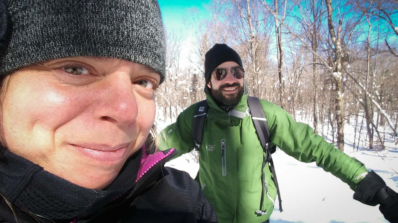 Ouch, aïlle, ayoye. J’ai mal partout. Ça c’est parce que je viens de faire 4h30 de ski nordique. Oui oui. Du ski nordique. Je ne savais même pas qu’il existait plusieurs sortes de ski de fond (petite face gênée ici). Il y a le nordique, qu’on a fait : dans la poudreuse jusqu’aux mollets à ouvrir la piste C, C pour « Coudonc elle monte tout le long cette piste!? » Ahahah. On aurait aussi pu tester le ski hok (un hybride entre le ski nordique et la raquette), le ski classique ou le ski pas de patin. Sérieusement, les conditions étaient fantastiques : la neige est pure et folle dans le Parc! Du vrai cardio nature.