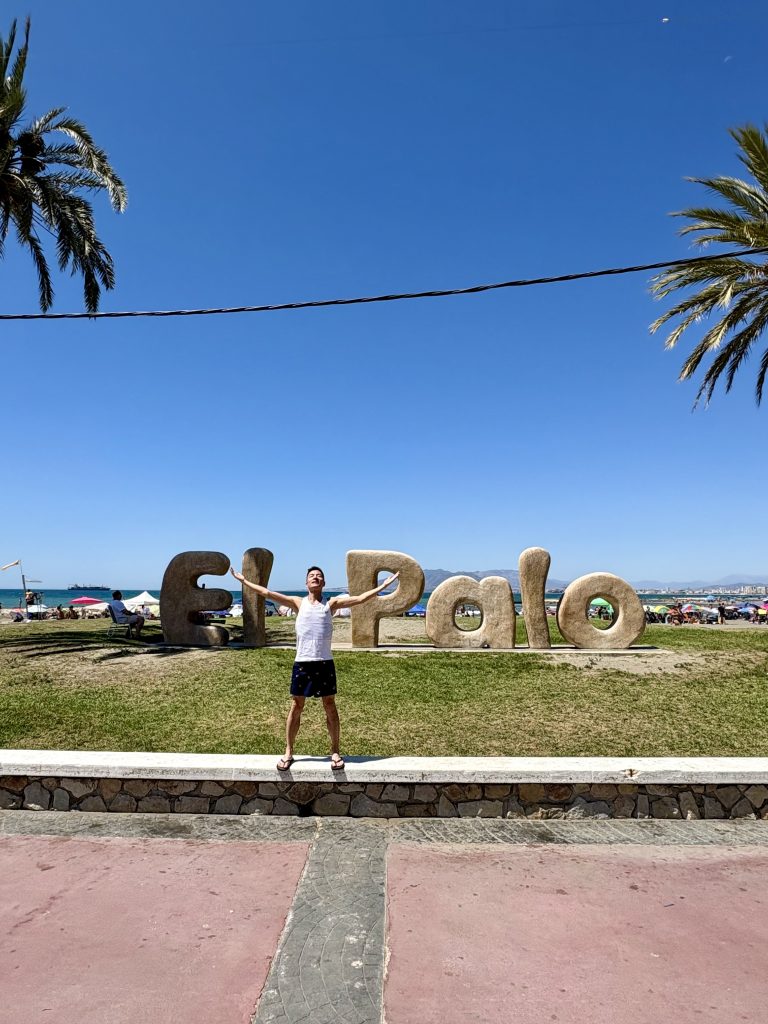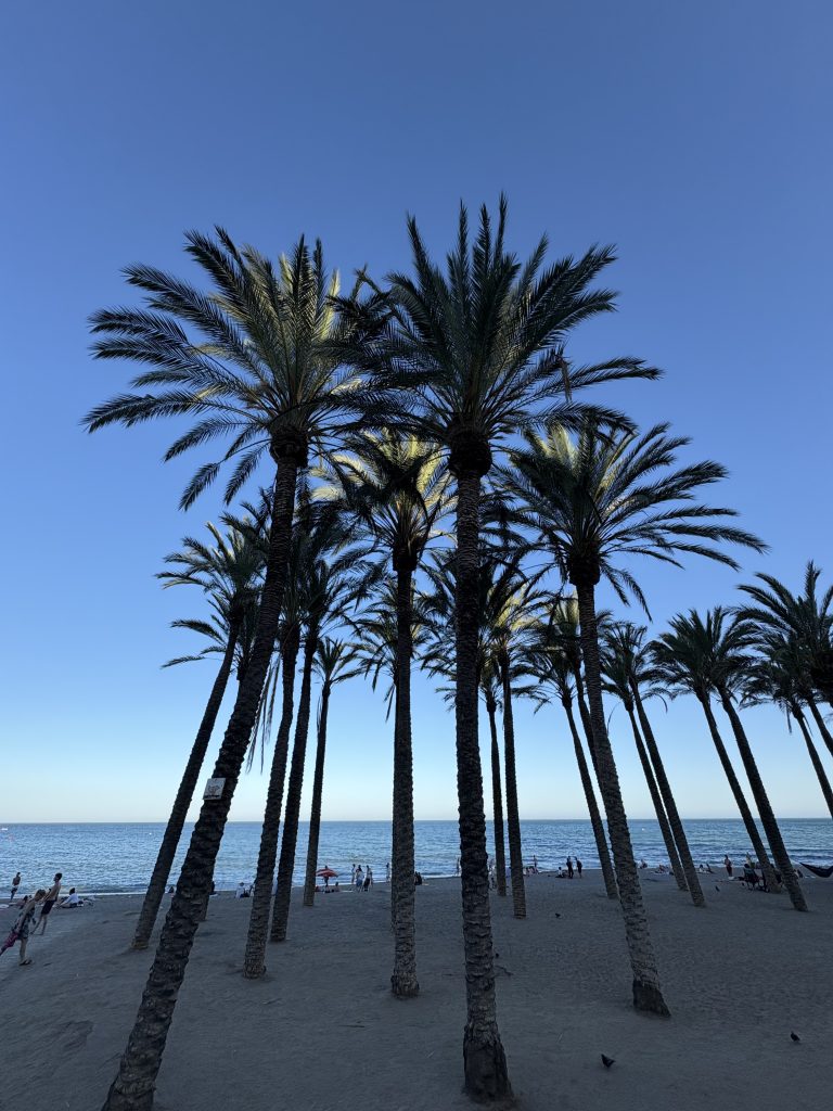 Nous avons d’abord marché une vingtaine de minutes du centre de la ville pour nous rendre à la plage Malagueta. Elle était superbe, entourée de palmiers, très propre, mais trop bondée à notre goût. Pas étonnant, étant la plus accessible. On a donc décidé de prendre l’autobus local pour nous rendre aux plages Pedrogalejo et El Palo, situées l’une à côté de l’autre et séparées par un petit pont. Après vingt minutes à vivre comme les locaux de l’endroit, nous y voilà! Ce fut la meilleure décision. Tellement charmant comme endroit! Beaucoup moins achalandé et on y retrouve des restos qui servent des sardines cuites sur la plage et autres délices typiquement espagnols. Ça valait le 1,80 € en autobus public!