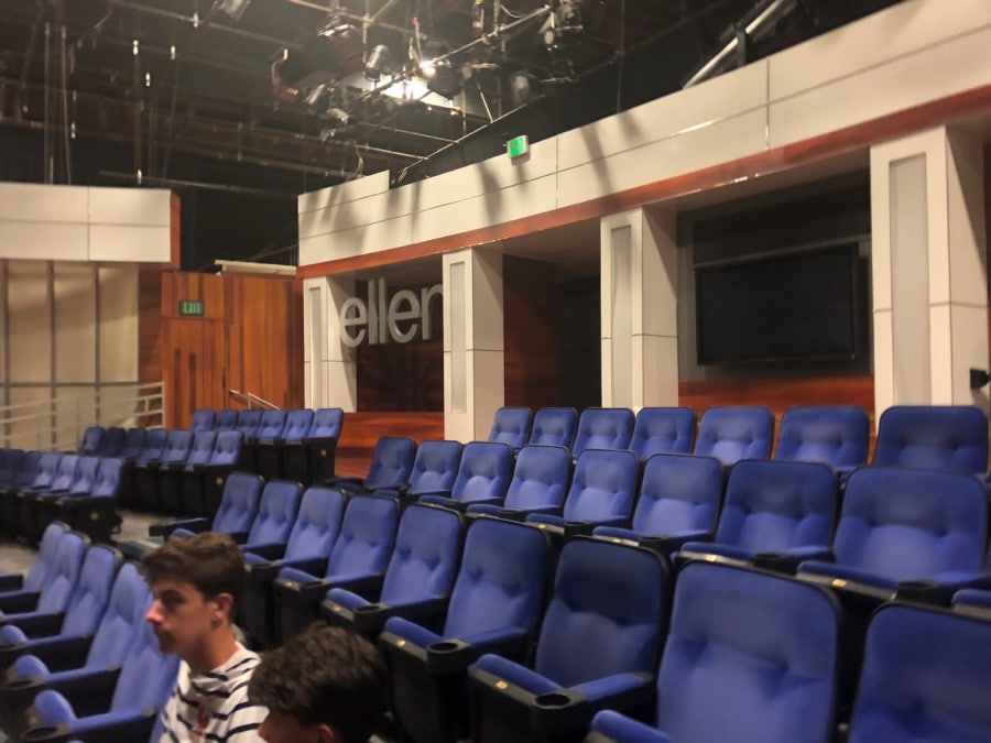 Lors de mon passage à Los Angeles cet été, j’ai eu le plaisir de visiter les studios de Warner Brothers en Californie où elle enregistre ses émissions. Les lieux étaient, je l’avoue, beaucoup plus drabes sans Ellen, ses invités et les éclairages qui donnent une luminosité incroyable à la scène. Voici donc à quoi le studio ressemble sans tout cela.