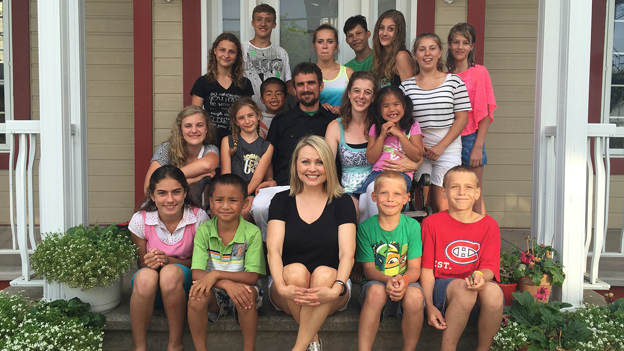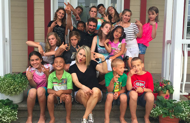 Avoir plusieurs personnes à sa charge implique souvent de ne plus disposer de temps pour soi. Je me suis introduite dans la routine organisée d’Agnès, une maman de 15 enfants qui se déplace en minibus avec sa famille et leur fait l’école à la maison en plus! Les familles nombreuses au Québec sont souvent associées à l’image d’une autre époque. La famille moyenne d’aujourd’hui ne compte qu’un enfant ou deux. Agnès déjoue les statistiques. J’ai été curieuse de découvrir comment elle arrivait à se faire entendre dans ce brouhaha… qui n’en est pas un. En fait, Agnès est un modèle d’organisation. Je vous avoue qu’après seulement une demi-journée en leur compagnie, je n’ai pu m’empêcher de m’assoupir sur le divan du salon. Coquins, les enfants de leur côté n’ont pas pu s’empêcher de croquer le moment en photo!