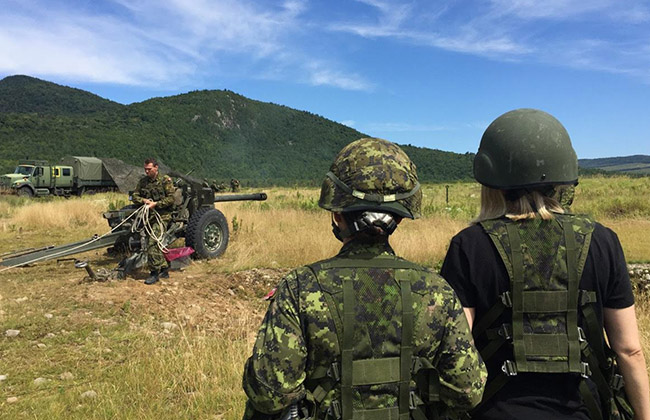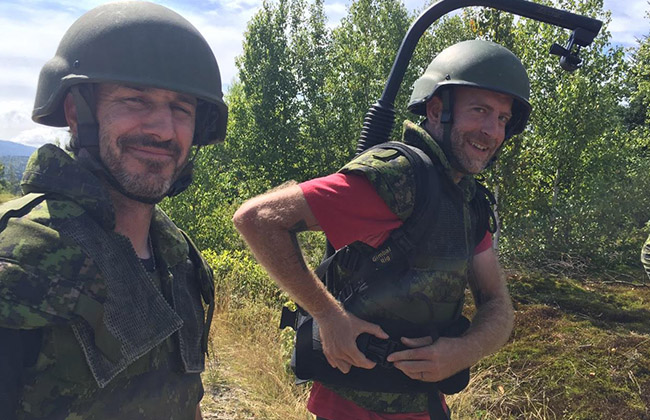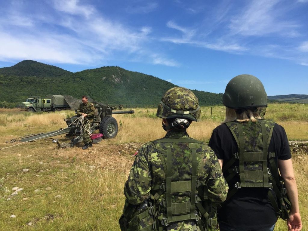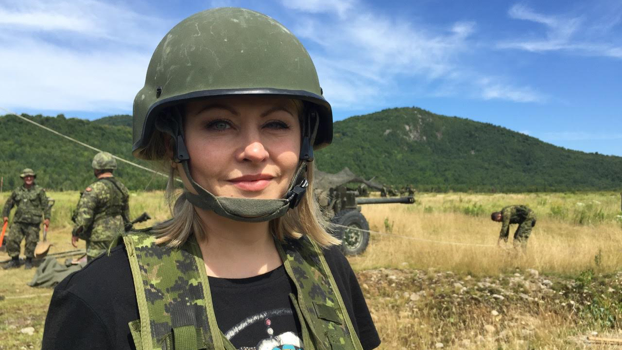 Je suivais Julie Destrempes, une femme formidable, major dans l’armée canadienne. La discipline est partie prenante de son quotidien et cette journée-là, elle devait mener son équipe lors d’un exercice militaire à Valcartier. Julie en est à sa 22e année au sein des Forces canadiennes et elle est chef des opérations. Gérer plusieurs milliers de gars et de filles ne lui fait pas peur. Je l’ai suivie dans l’exercice de ses fonctions. L’artillerie lourde, trois immenses canons, a été déployée devant nos yeux. Ces monstres bruyants et destructeurs font la fierté de l’armée, mais m’ont terrorisée.